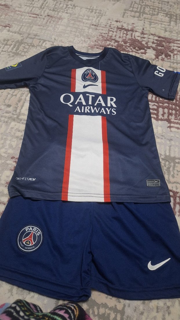 9,10 yaş Lacivert kısa kollu, fitted kesim erkek forma. Üzerinde Paris Saint-Germain logosu ve Qatar Airways baskısı bulunur. Velcro detaylıdır. ⚽