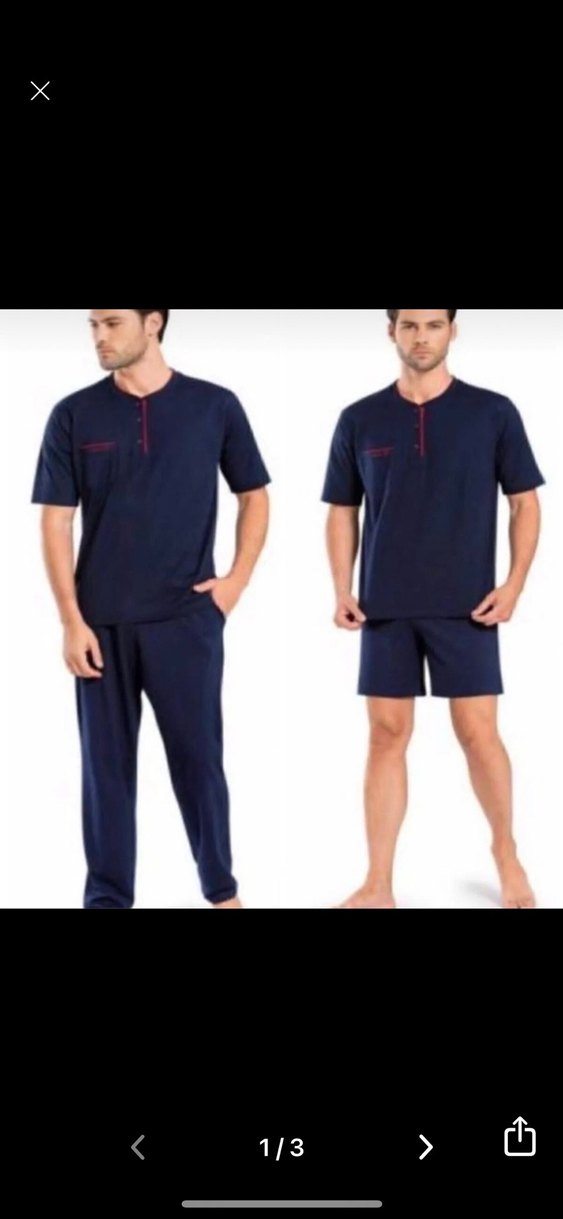 Lacivert renkli, kısa kollu ve bisiklet yaka erkek pijama takımı. Rahat kesim, kısa boy, sade tasarım ve şık detaylarla günlük kullanım için uygundur. S beden pirre cardin marka 3 lü set