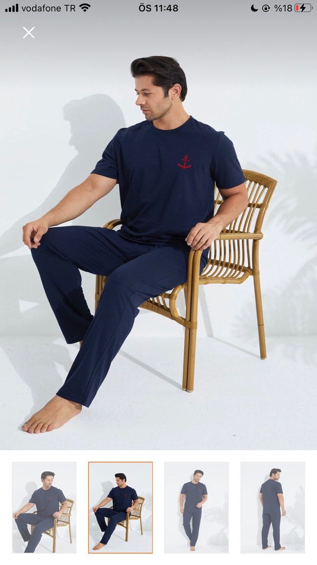 2 XL Erkek lacivert pijama takımı, kısa kollu ve bisiklet yaka.