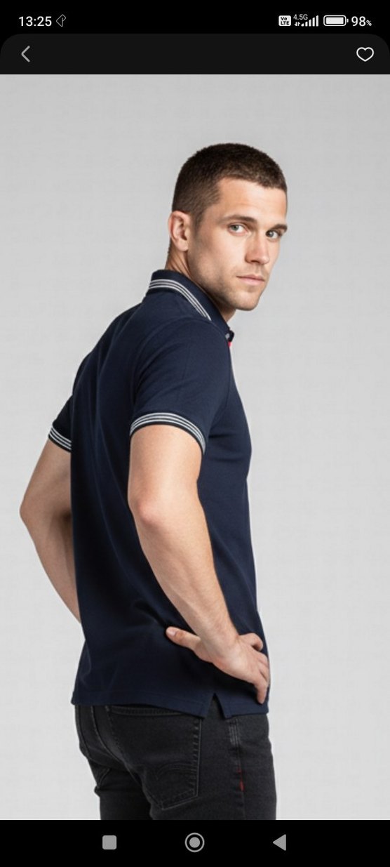 Lacivert renkli, kısa kollu, yakalı ve düğmeli erkek polo tişörtü. Denim kumaştan, regular fit kesim ve spor tarz için uygun.L,XL