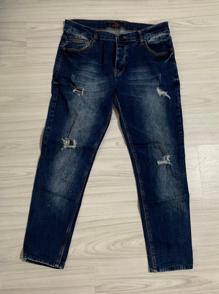 Lacivert kot pantolon, regular kesim ve normal boyda. Tokalı detaylar ve hafif yıpranmış görünüme sahip, günlük kullanıma uygun. ✨