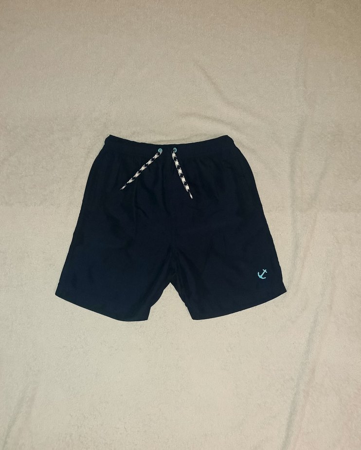 11- 12 yaş Lacivert renkli, bol kesim mini erkek yüzme şortu, bağcıklı bel ve çapa detayı ile rahat plaj kullanımı için uygundur.
