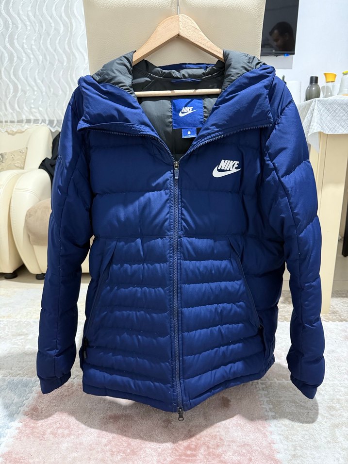 Erkek Lacivert Nike Kapüşonlu Kaz Tüyü Mont