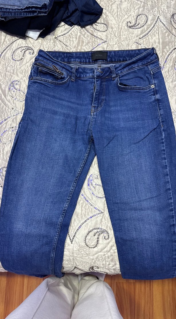 Kadınlar için lacivert renkte, normal boy ve regular fit kot pantolon. Kemer detaylı, günlük kullanıma uygun rahat tarzda.