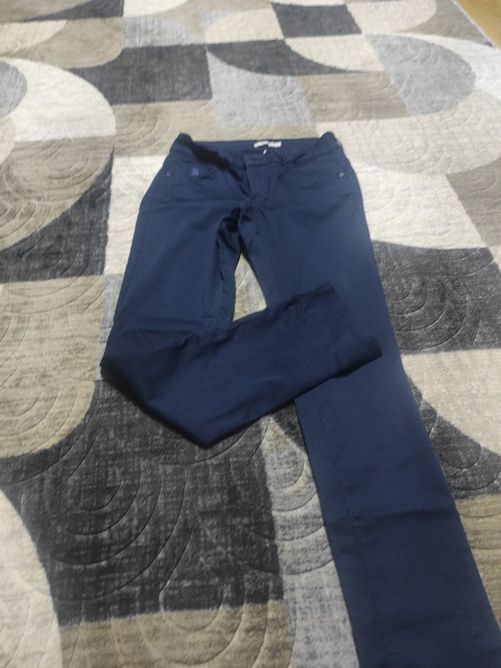 Lacivert denim pantolon, normal kesim ve midi boy, desen içermeyen sade tasarımıyla günlük kullanıma uygun şık bir seçim.
