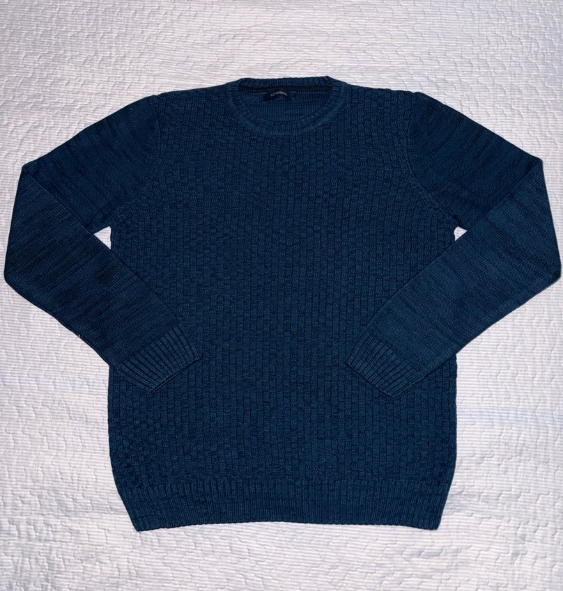 Lacivert renkli, örgü dokulu bisiklet yaka, uzun kollu, slim fit kazak. Günlük ve sokak stiline uygun.