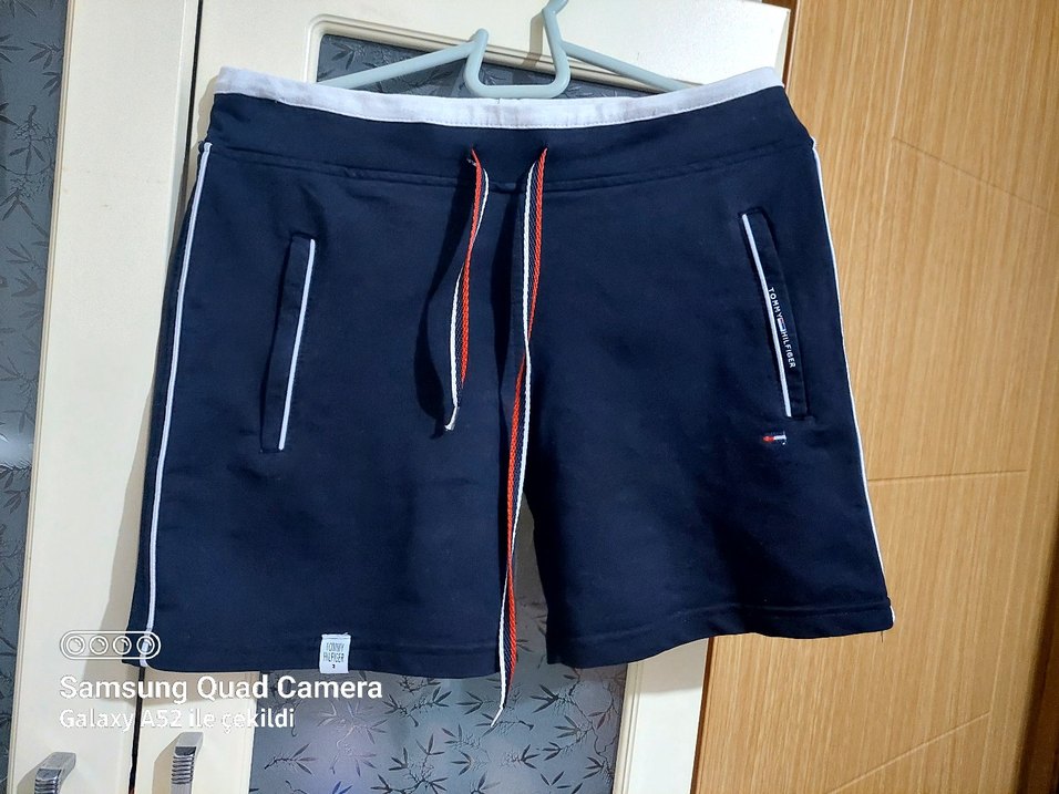 Erkekler için pamuklu, fermuarlı cepli ve bağcıklı lacivert kısa şort. Günlük rahat kullanım için uygun, trend sokak tarzı şıklığı sunar.