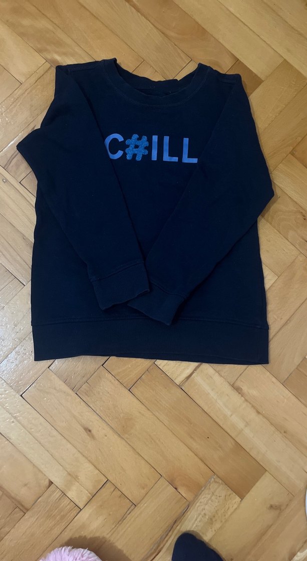 Erkek çocuklar için uzun kollu, yuvarlak yaka ve bol kesim pamuklu örme sweatshirt. Koyu mavi renk ve "C#ILL" baskılı desenle sokak stili için uygun.