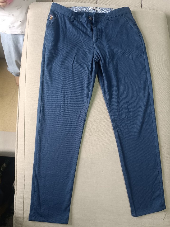 Lacivert renkte, normal kesim erkek pantolonu. Sentetik kumaştan yapılmış, günlük kullanıma uygun midi boyda rahat bir model.