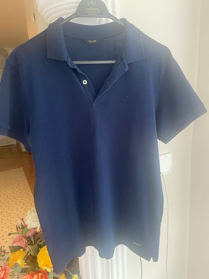 Erkekler için fitted kesim, polo yaka, kısa kollu, düğmeli ön detaylı, lacivert renkli, desen içermeyen sentetik kumaştan yapılmış tişört.