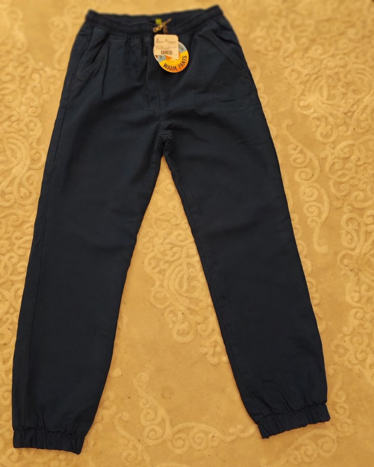 lacivert, rahat kesim, elastik bel ve bilek detaylı erkek çocuk pantolonı. Yumuşak ve sıcak kumaştan üretilmiştir. okul için tam kışlık