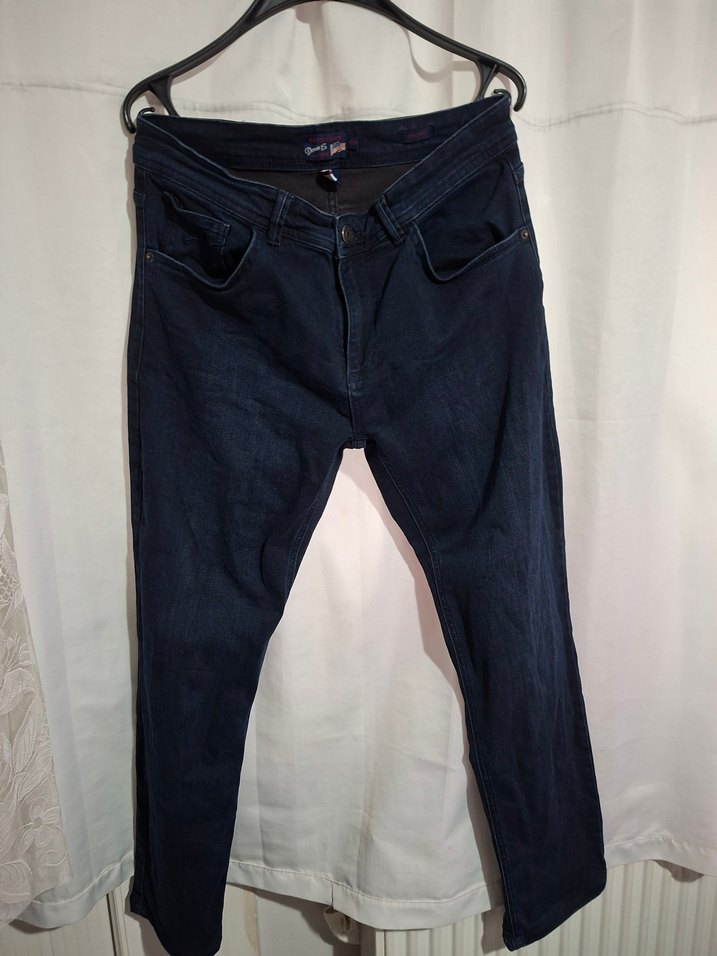 Lacivert renkli, regular fit kesim ve tokalı detaylı erkek kot pantolon. Günlük kullanıma uygun, normal boy ve sade renkte.