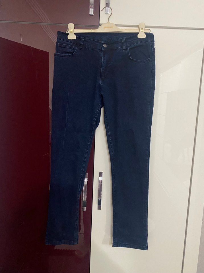 Erkekler için regular fit, normal boyda, koyu mavi denim pantolon. Günlük kullanım için rahat ve şık bir sokak stili sunar.