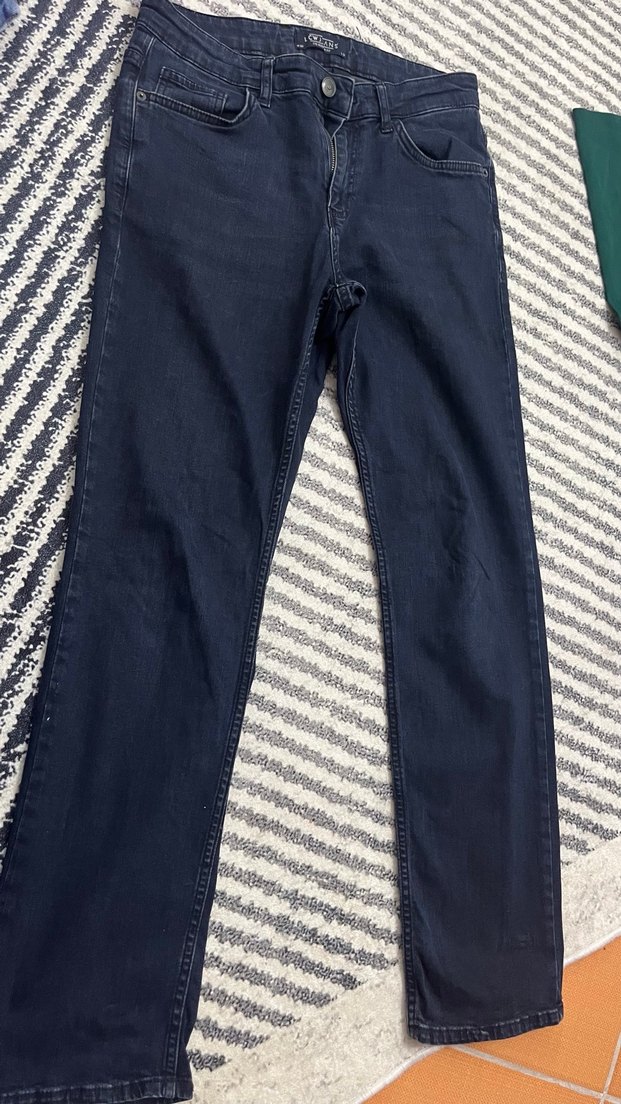 Erkekler için regular fit kot pantolon, rahat denim kumaştan üretilmiştir. Normal uzunlukta, kemerli ve günlük kullanıma uygundur. Lacivert ve hafif gri tonludur.
