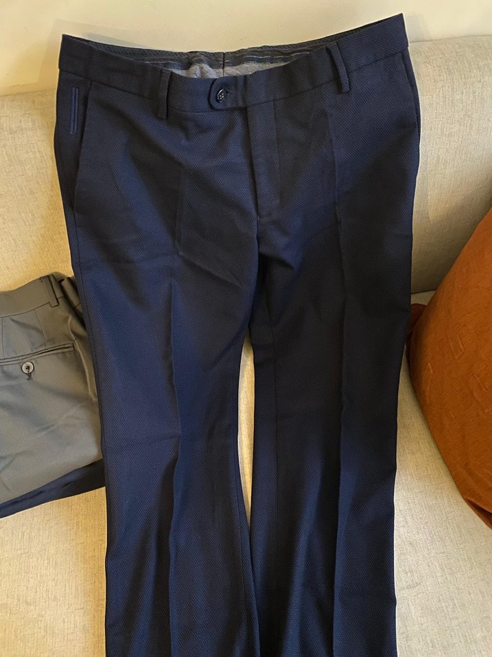 Lacivert erkek pantolon, regular fit ve normal boyda, Minimal desenli, ofis için şık ve rahat bir seçenek. Temiz üründür.