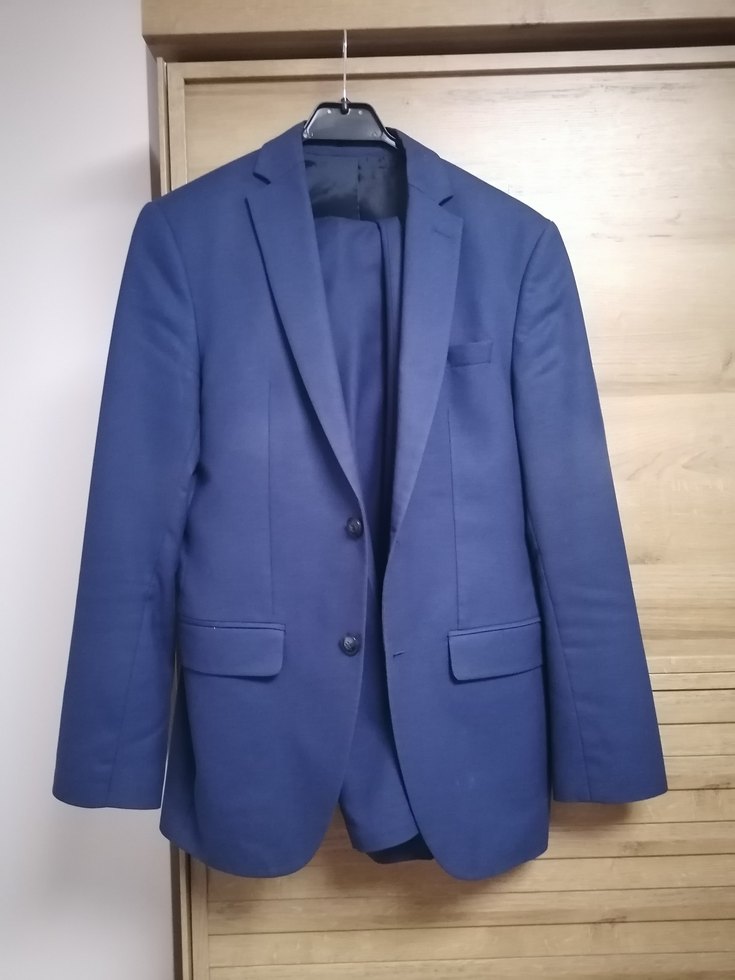 Düğmeli, uzun kollu ve lacivert renkte erkek takım elbisesi. Normal boy ve regular fit kesime sahip, klasik ve iş ortamına uygun. Hatemoğlu marka. Pantolon boyu 94 cm. 168 170 boylarında birine uygun olur.