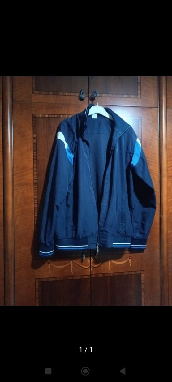 Erkekler için lacivert renkli, uzun kollu, fermuarlı, rahat kesim spor tarzında ceket. Yumuşak fleece kumaştan üretilmiş, kol ve etek uçlarında çizgiler bulunur.