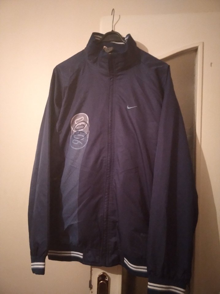 Erkekler için yüksek yakalı, uzun kollu, fermuarlı ve bol kesim lacivert spor rüzgarlık, yumuşak ve sıcak kumaştan üretilmiştir.
