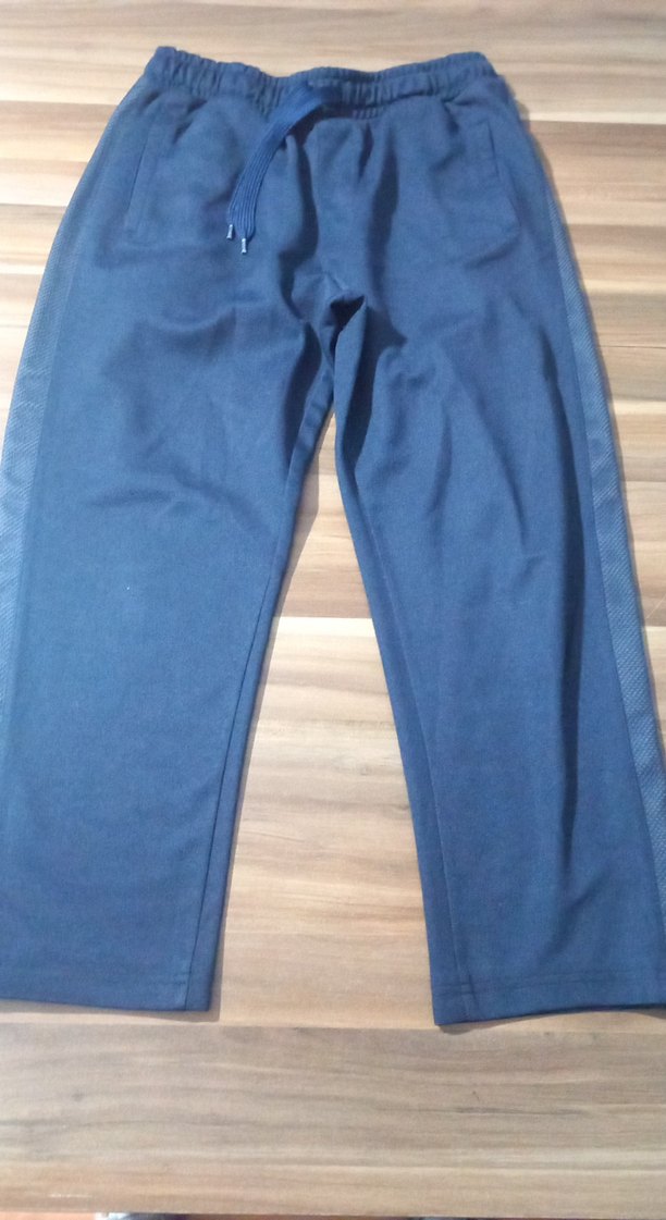 Erkekler için regular fit, kemerli, sentetik kumaştan yapılmış lacivert spor pantolon. Gri detaylarla sokak stiline uygun, rahat kesim.