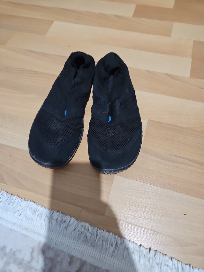 Gündelik kullanıma uygun, lacivert renkli, kauçuk malzemeden erkek su ayakkabısı, Velcro kapamalı ve sade normcore tarzında. Markası temsili. kullanılmış ürün resimledim