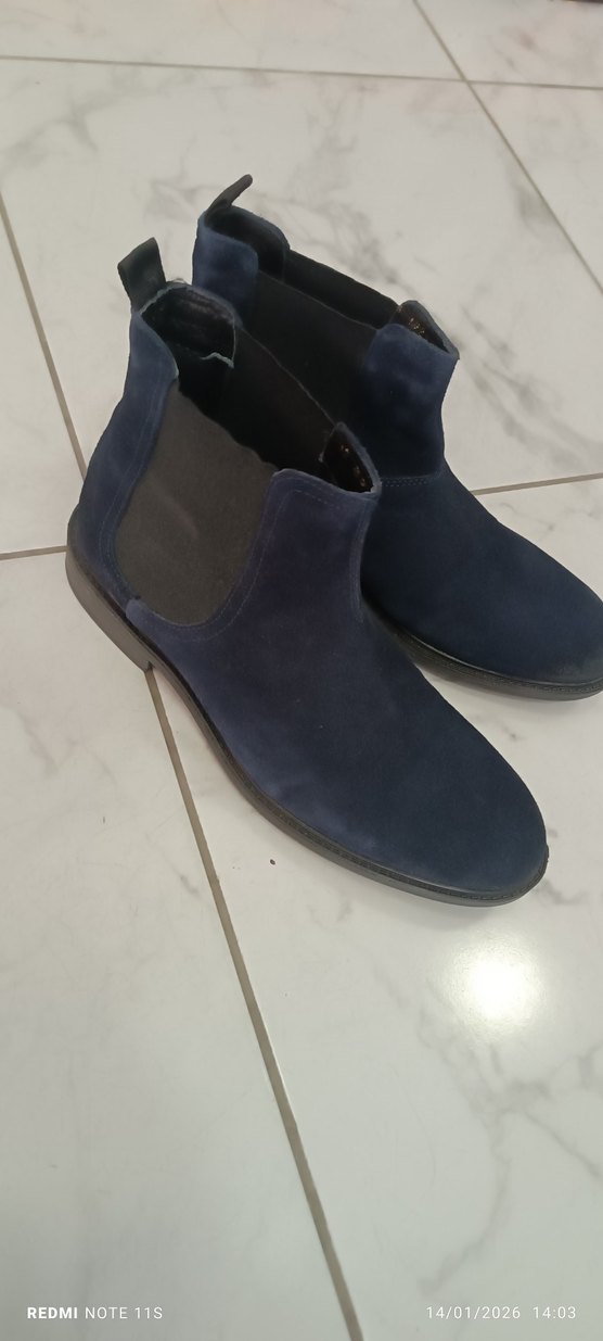 Erkekler için koyu lacivert süet bot, tokalı detaylıdır. Günlük kullanım ve sokak giyimi için uygundur. Rahat ve şık. sıfır ürün hiç kullanılmadı kauçuk tabanlı 43 numara Bambi nubuk %100 deri