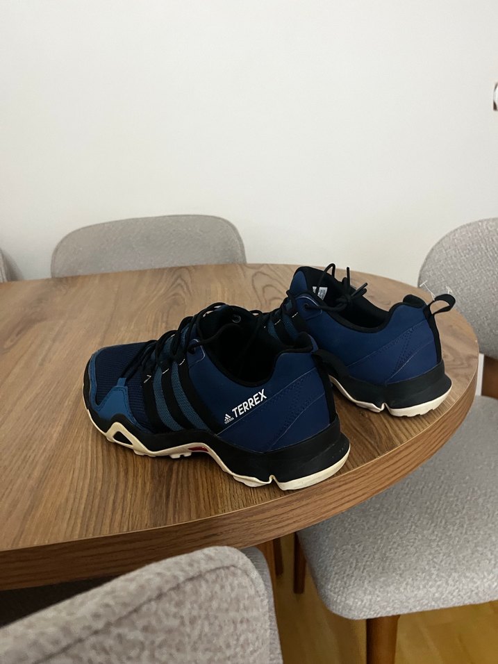 Lacivert baskılı desenli, cırt cırtlı erkek outdoor spor ayakkabısı. Dayanıklı kauçuk tabanlı, sportif sokak tarzına uygun. 1,2 defa giyildi sorunsuz