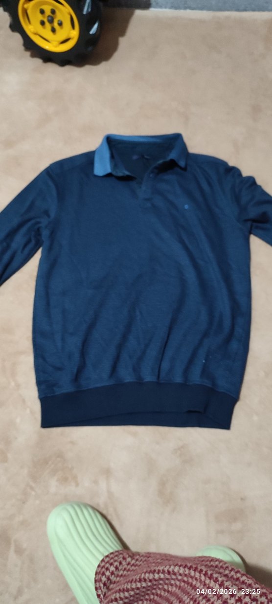 Erkekler için lacivert renkte, düğmeli, uzun kollu ve yakalı polo tişört. Rahat kesimi ve yumuşak, sıcak kumaşı ile günlük sokak stiline uygundur.