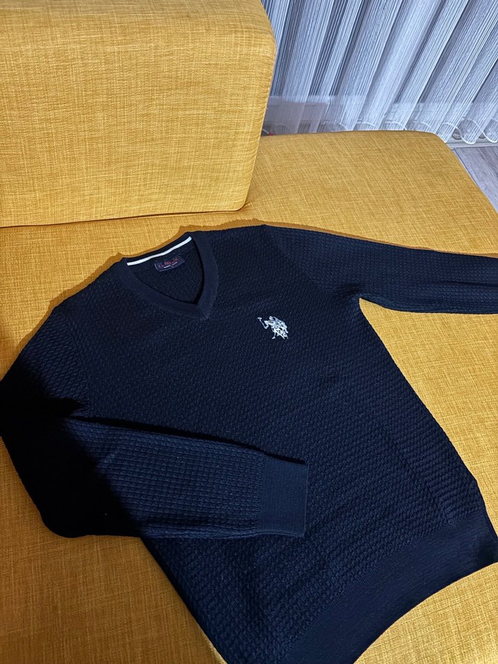 Bu erkek kazak, örgü dokusu, V yaka ve uzun kollu tasarıma sahiptir. Normal kesim ve yumuşak örme kumaştan üretilmiştir. Koyu mavi rengi günlük kullanıma uygundur.