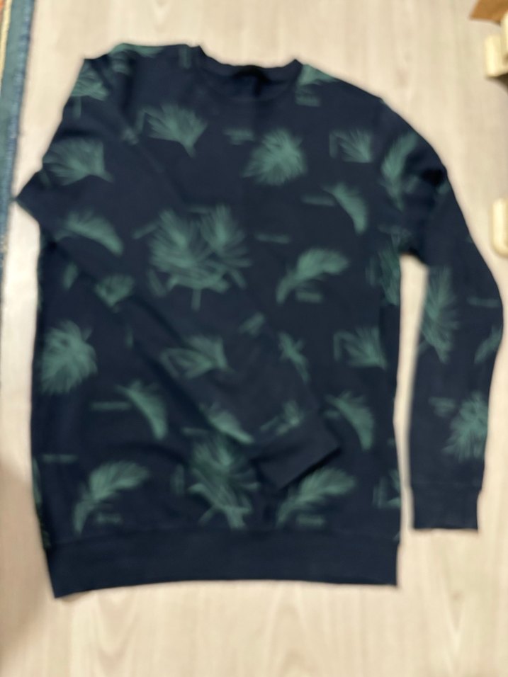 Erkek Lacivert Yaprak Desenli Sweatshirt