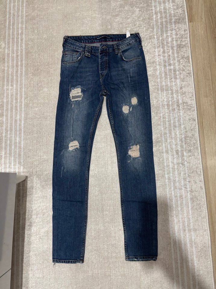 Erkek Lacivert Yırtık Kot Pantolon