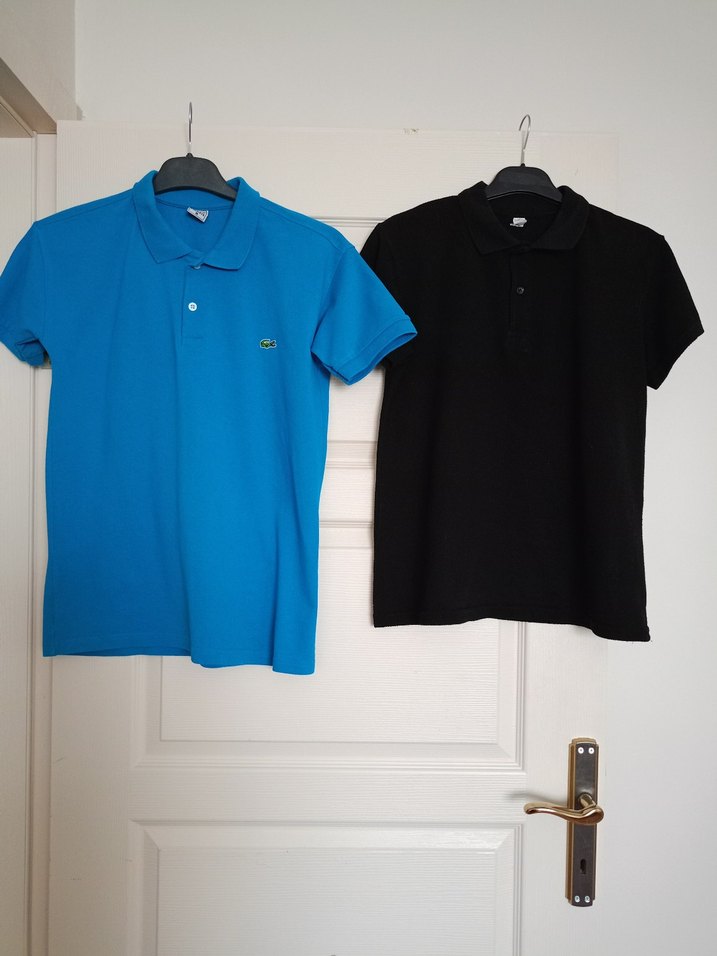 Lacoste marka, kısa kollu, yakalı ve pamuk kumaştan üretilmiş erkek polo tişörtü. Günlük kullanıma uygun, rahat ve şık bir görünüme sahiptir. iki adet tek fiyat siyah olan farklı marka