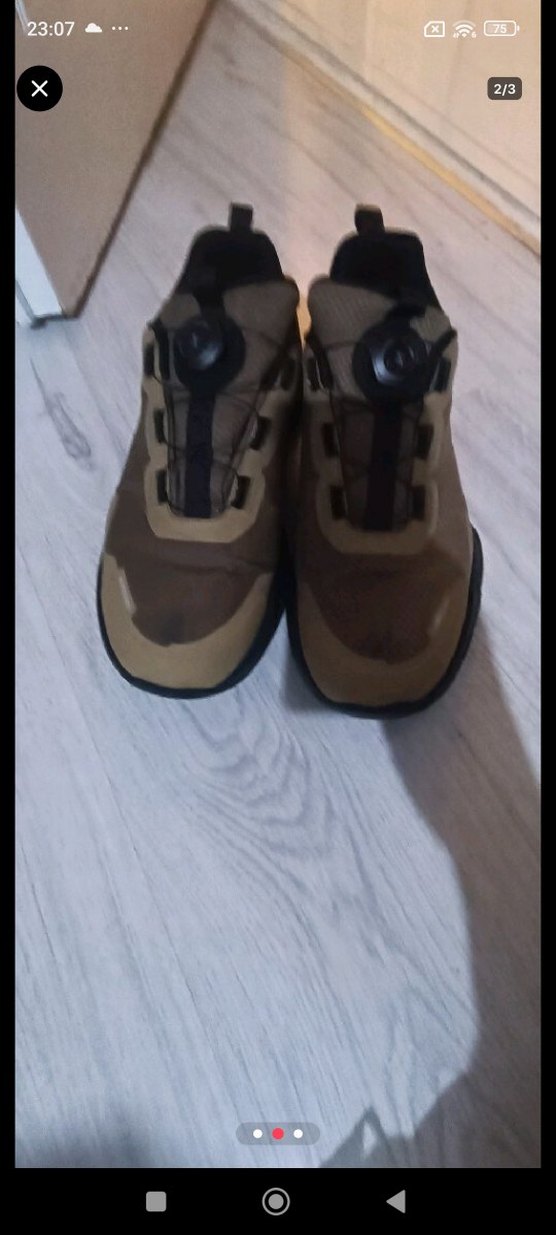 Kahverengi ve gri kamuflaj desenli, cırt cırtlı erkek outdoor ayakkabısı. Kauçuk tabanlı, trend sokak stili için uygun.