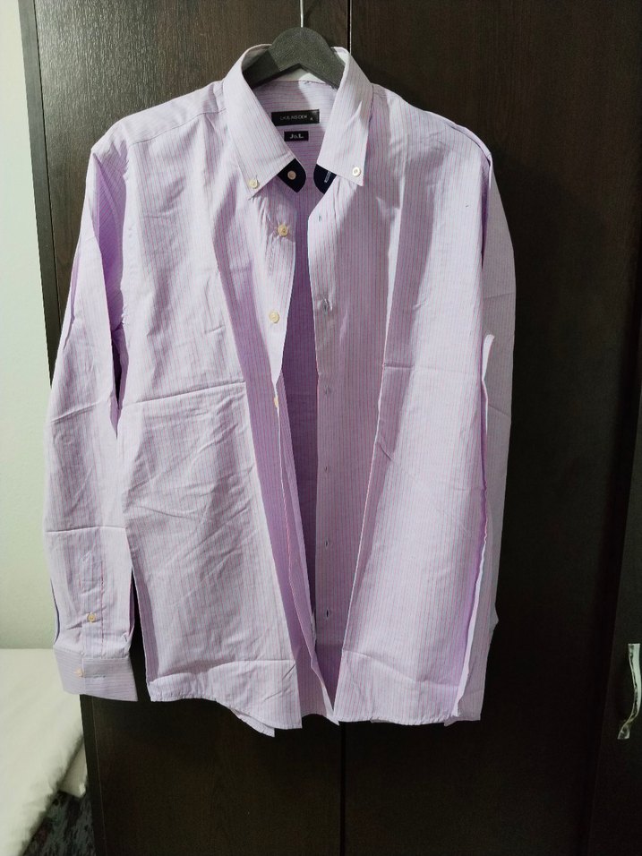 Erkek gömleği, regular fit kesim, yakalı ve uzun kolludur. Yumuşak pamuklu kumaştan yapılmış, düğmeli ve normal uzunluktadır. Pastel lila renk ve desensiz tasarım günlük ve iş tarzına uygundur.