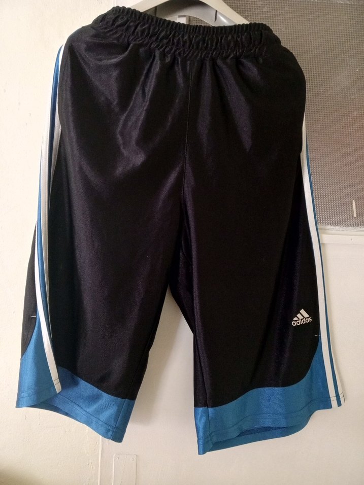 Adidas marka erkek şort, bol kesim ve elastik bel ile rahatlık sağlar. Sentetik kumaştan üretilmiş, koyu mavi ve beyaz çizgiler içerir. Sokak tarzı için uygun. 70 cm uzunluğunda bel 72 cm dir