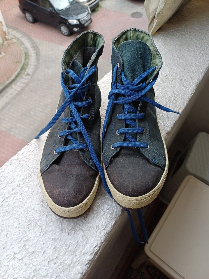 Erkek spor ayakkabıları için mavi bağcıklar, günlük ayakkabılara canlılık katıyor. Athleisure ve counterculture tarzına uygundur.