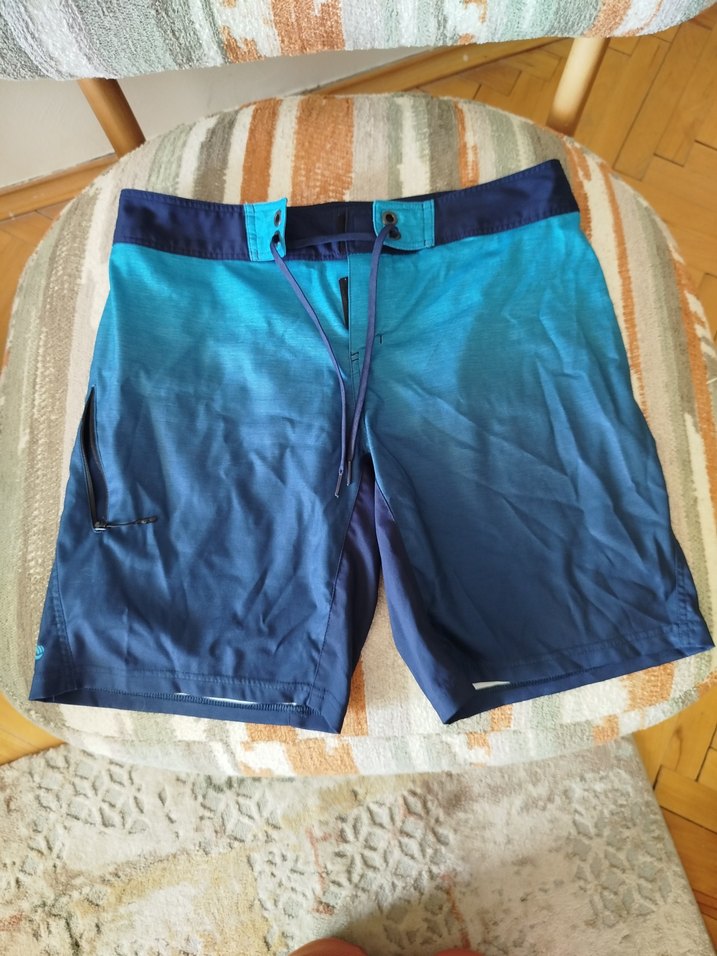 Erkekler için bağcıklı, bol kesim, koyu mavi tonlarında tie-dye desenli midi yüzme şortu. Plaj ve sokak stiline uygundur bedeni l-xl 3-4 kere kullanıldı decathlon dan alındı etiketi kesilmişti temiz