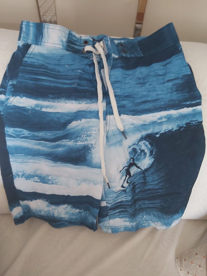 Erkek Mavi Baskılı Deniz Şortu