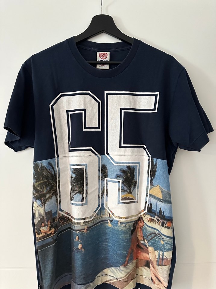 Orjinal marka !!Pamuk kumaştan, rahat kesim ve yuvarlak yaka kısa kollu erkek tişörtü. Koyu mavi renkte, önünde 65 numarası ve plaj baskısı bulunur.