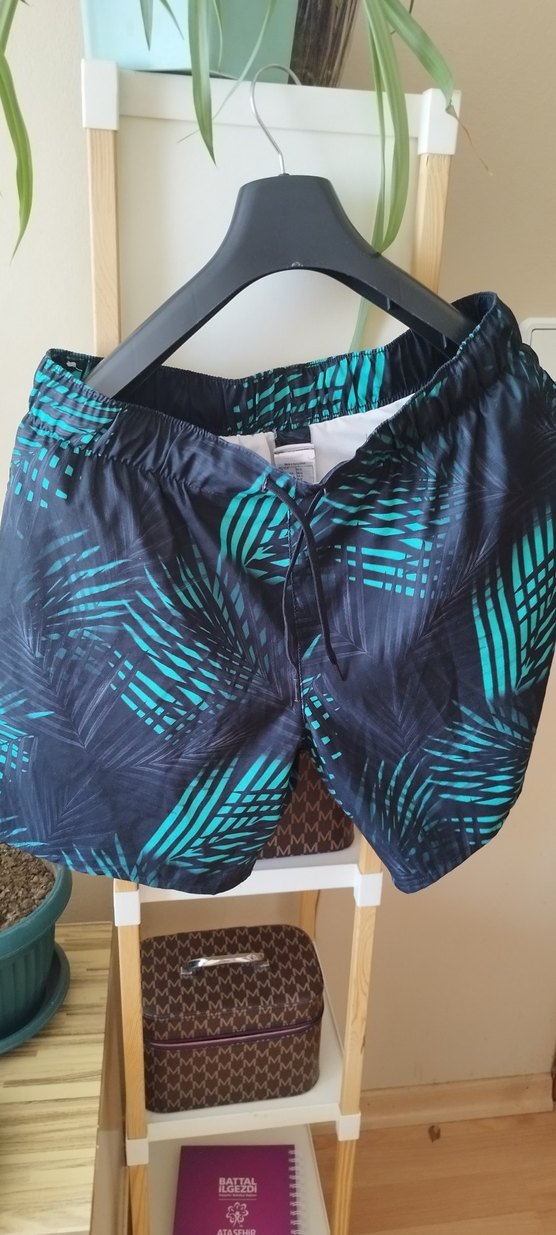 Erkek Mavi Batik Desenli Bol Kesim Şort