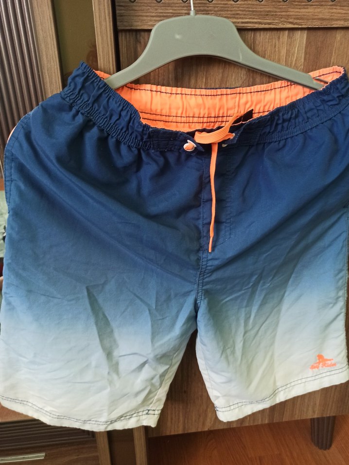Erkekler için bol kesim, mavi batik desenli ve kemerli mini deniz şortu, plaj ve sokak stiline uygun. ✨yeni gibi.bi sıkıntı yok