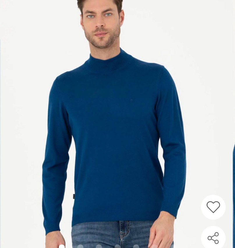 Erkek Mavi Boğazlı Triko Kazak