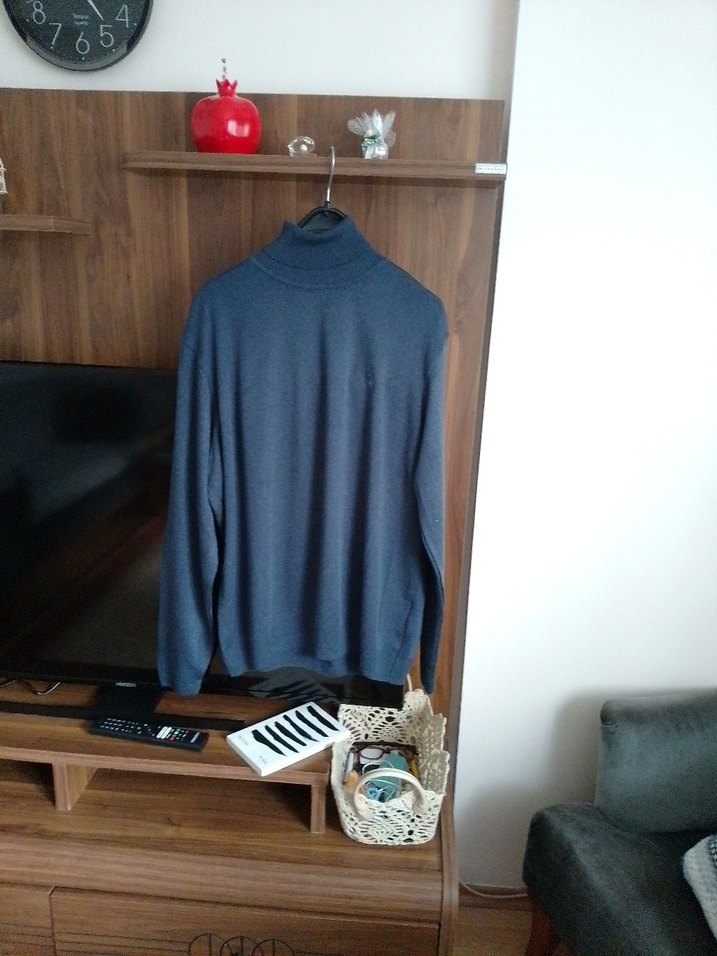 Mat mavi renk boğazlı ipek gibi bir dokuda yünlü kazak yeni ürün kullanılmadı.Simenta marka listede olmadığı için usulen Beymen işaretledim.