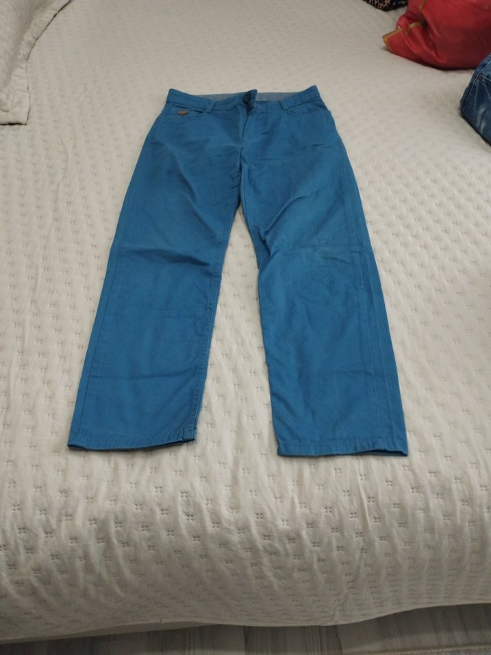Erkekler için bol kesim, belden kemerli mavi denim pantolon. Parlak kumaşı ve normal boyu ile günlük sokak stiline uygun. 8 9 10 yaş