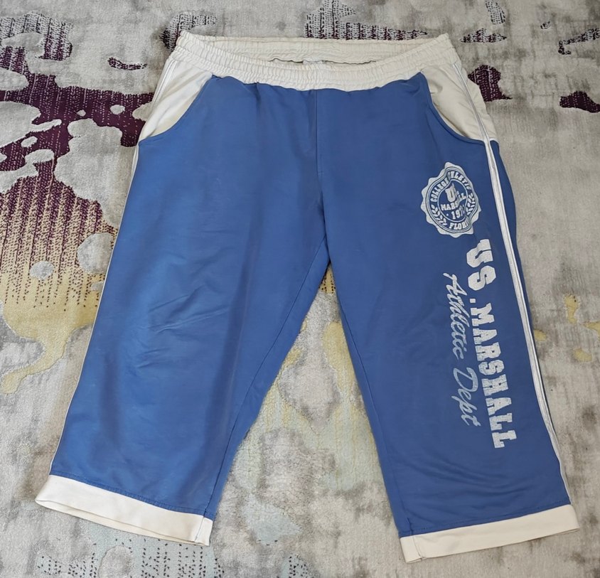 Açık mavi, bol kesim, fermuarlı cepli ve baskılı tasarımlı şort. Lastikli bel bandı ile rahat bir kullanım sunar. "U.S. Marshall Athletic Dept" yazılıdır.