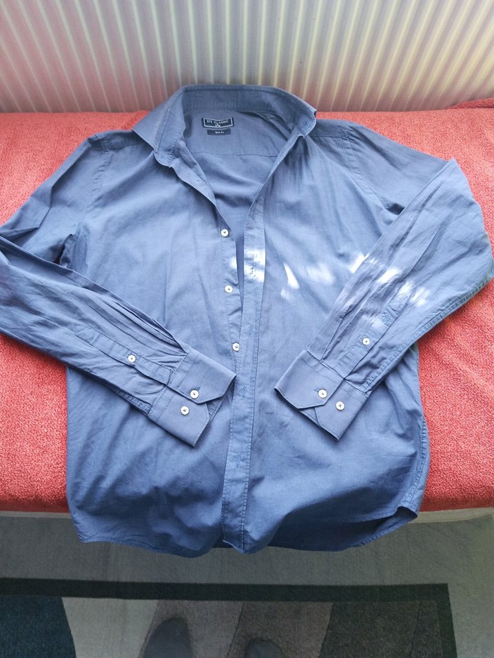 Erkekler için mavi pamuklu kumaştan, yakalı ve düğmeli uzun kollu gömlek. Normal kesim ve sade tasarıma sahiptir, günlük kullanıma uygundur. D'S classic