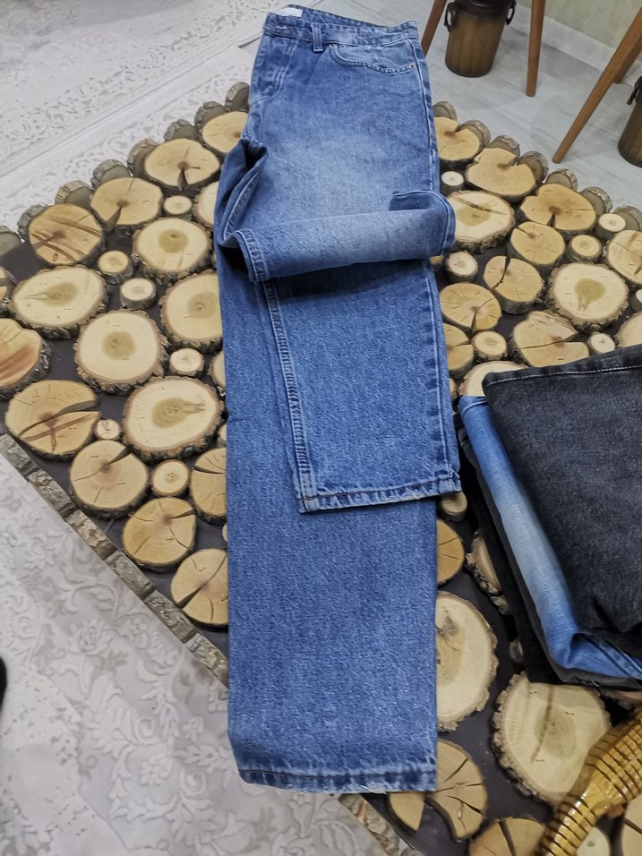 Erkek için mavi denim kot pantolon, regular fit ve batik desenli. Bağlamalı beli ve midi normal boyu ile günlük rahat kullanım için uygun.