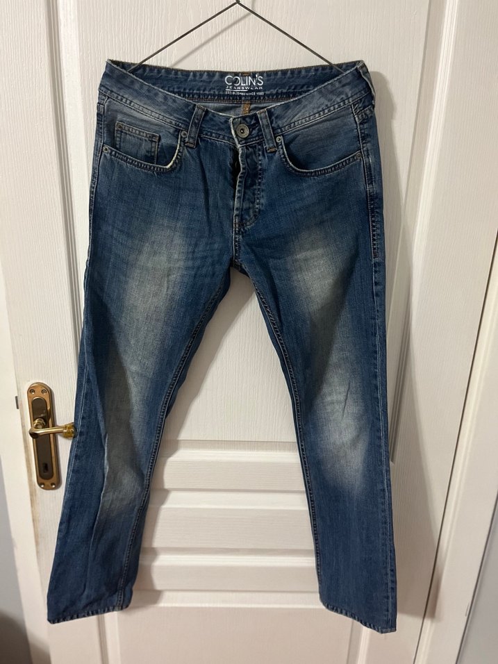 Parlak mavi renkte, bol kesim erkek kot pantolon. Denim kumaştan yapılmış, tokalı tasarıma sahip. Günlük sokak giyimi için uygundur.