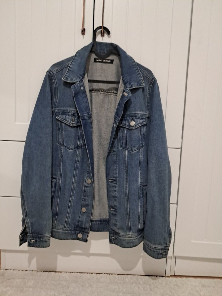 Erkek Mavi Denim Ceket, Düğmeli, Salaş Kesim