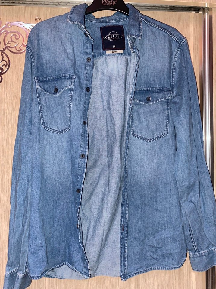 Erkekleriçin bol kesim, uzun kollu, düğmeli mavi denim gömlek. Notlu yaka detayı ve parlak renkte, günlük rahat kullanıma uygun.