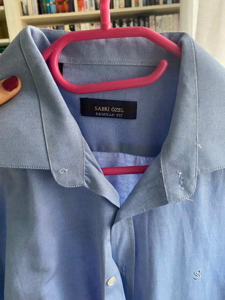 Mavi denim erkek gömlek, yakalı ve uzun kollu. Regular fit, düğmeli ve ofis ya da günlük kullanıma uygun. Marka: SABRiOZEL.